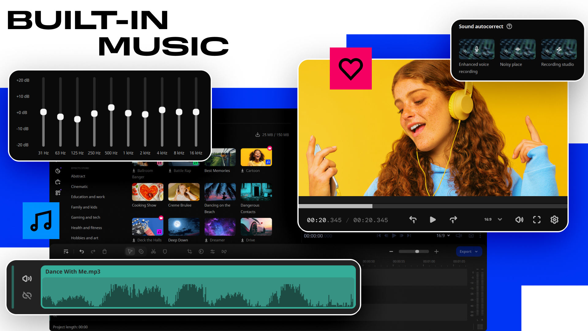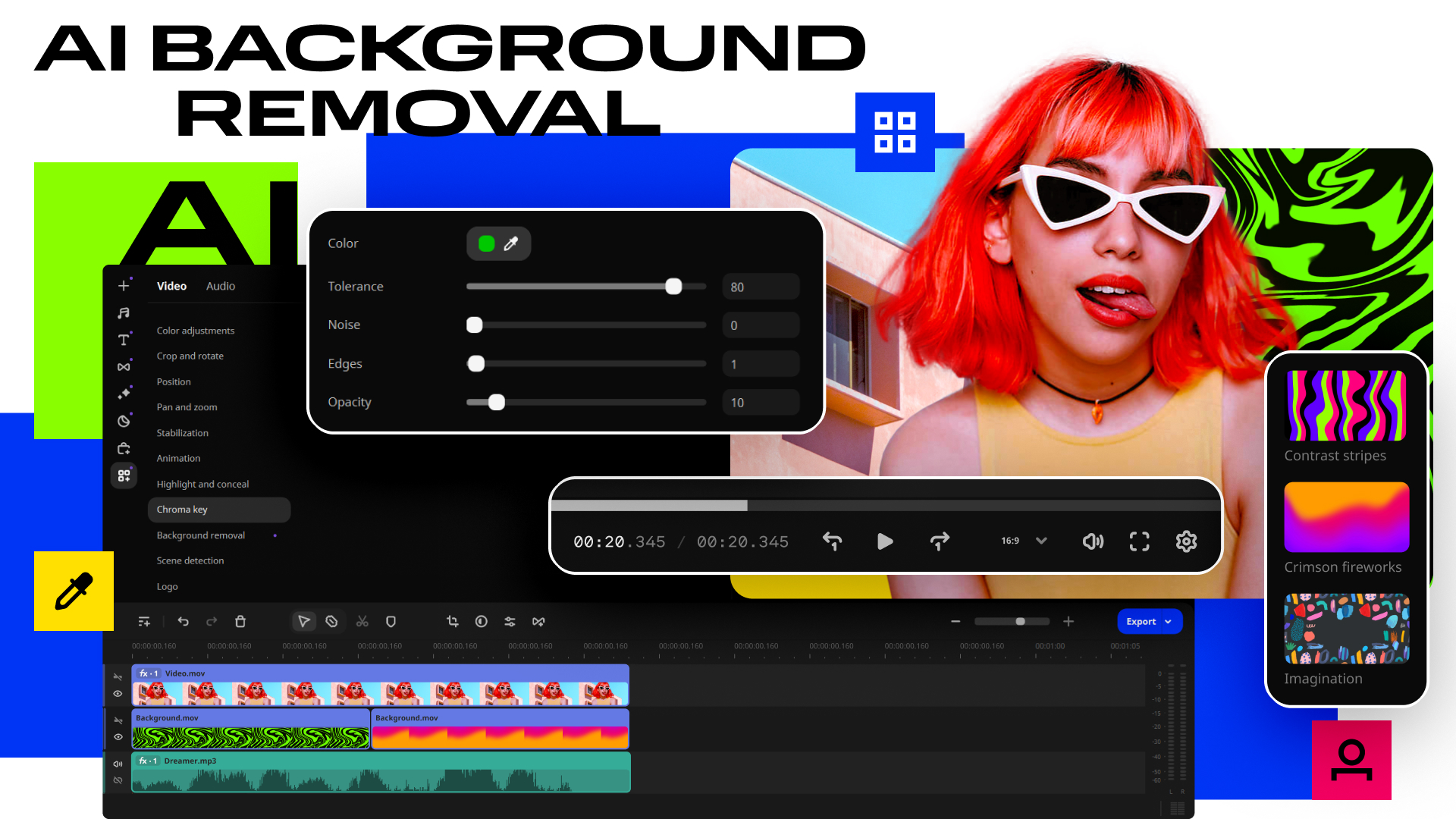 不想花時間處理背景或雜音?AI 背景移除與降噪功能直接幫你搞定,專注創作就好。